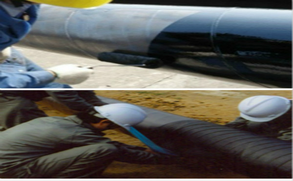 2、纏繞聚丙烯防腐膠帶待底漆表干后即可進(jìn)行,繞帶過(guò)程中必須保持均勻漲力,纏平貼實(shí)、搭接一致,纏好膠帶后,在埋地前為克服造成起泡現象,需將防腐管道采取遮陽(yáng)保護的方法掩蓋24小時(shí)。