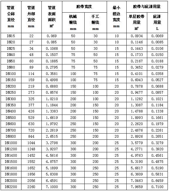 防腐冷纏膠帶設計、施工用量概算表