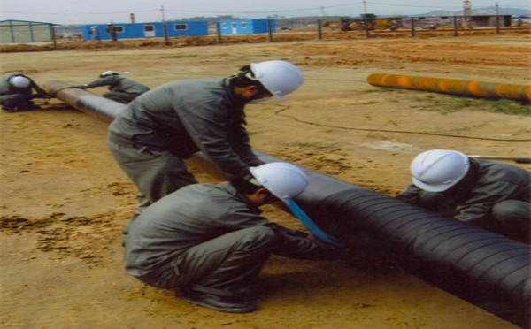 (3)足夠的機械強度:有一定的抗沖擊強度,以防止由于搬運和土壤壓力而造成損傷;要有良好的抗彎曲性,以確保管道施工時(shí)受彎曲而不致?lián)p壞;還要有較好的耐磨性,以防止由于土壤摩擦而損傷;與管道有良好的粘結性。